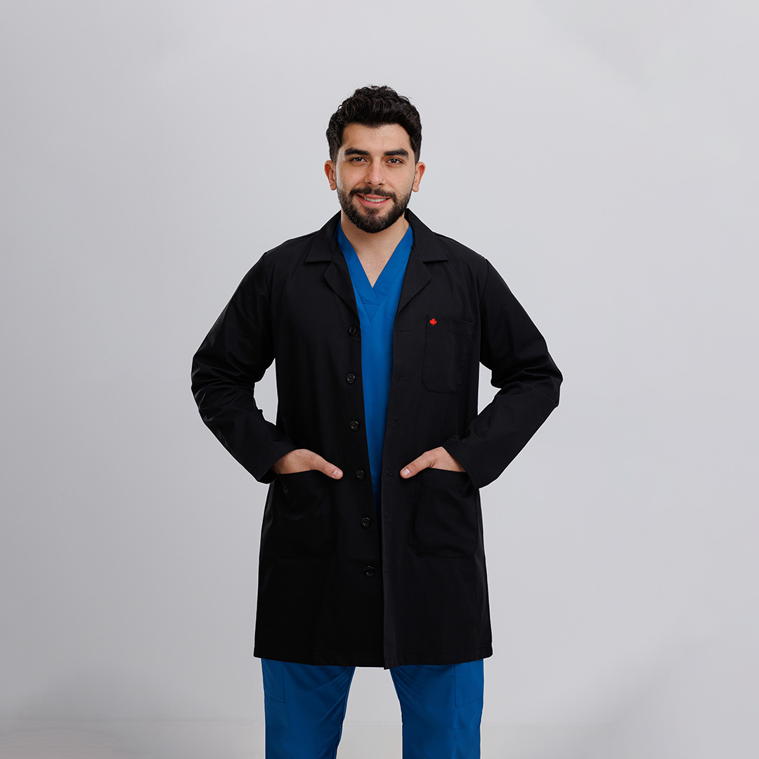 لاب كوت طبي رجالي ازارير لون أسودلاب كوت طبي رجالي ازارير لون أسود