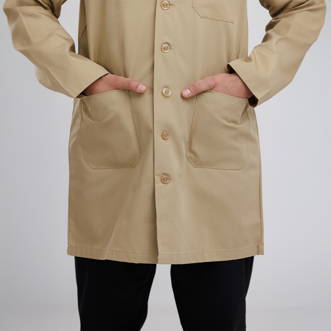 This classic men’s lab coat offers a clean, professional look with all-day comfort. The 65/35 poly-cotton fabric is breathable, wrinkle-resistant, and easy to care for—ideal for medical professionals, lab technicians, and students.